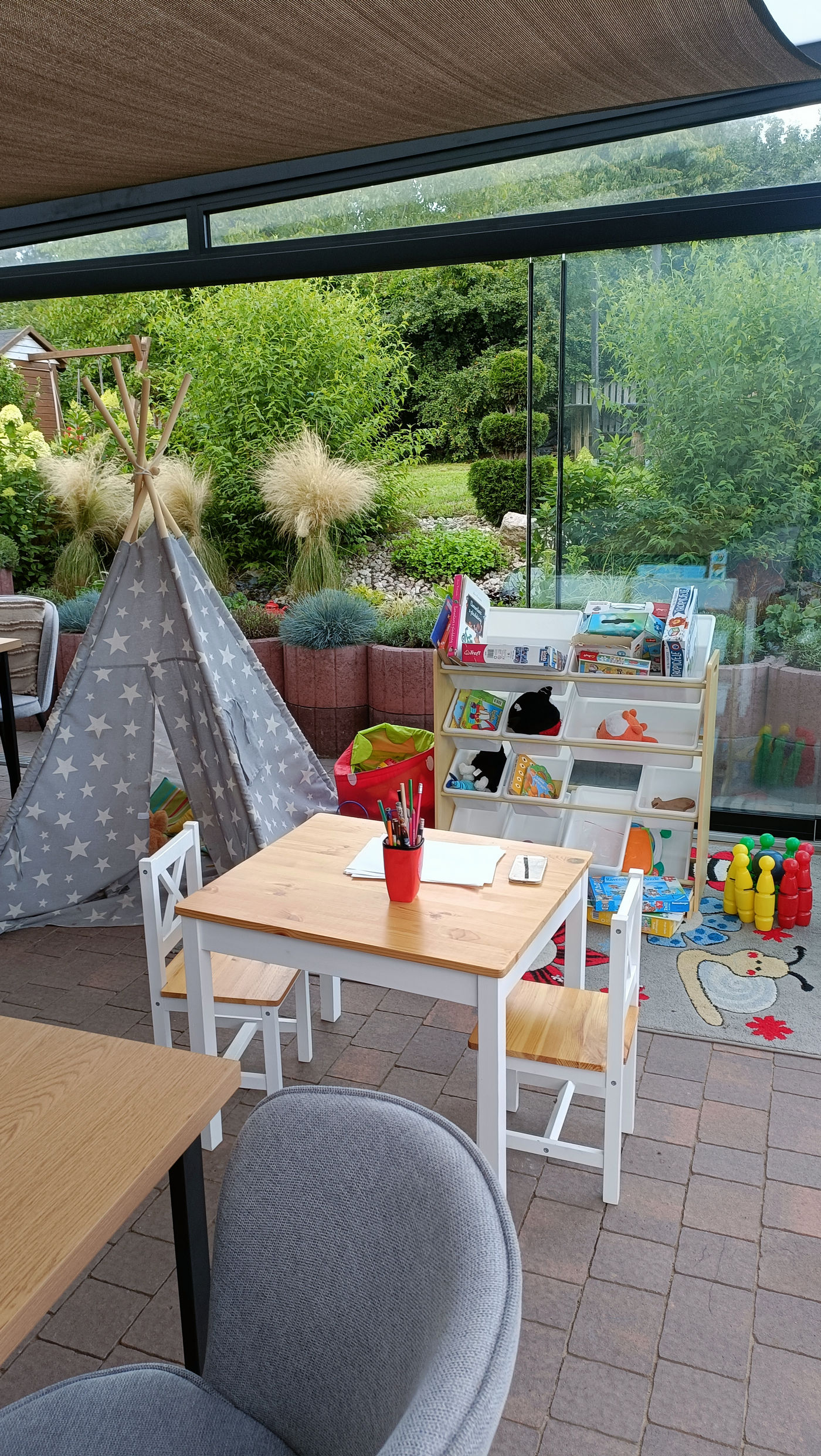 Obok pracowni działa nasza kawiarenka, w której serwujemy domowe ciasta, rzemieślnicze lody, desery oraz aromatyczne kawy i herbaty. Do dyspozycji gości jest całoroczna weranda oraz ogródek pełen zieleni – idealne miejsce na chwilę oddechu po twórczej pracy.